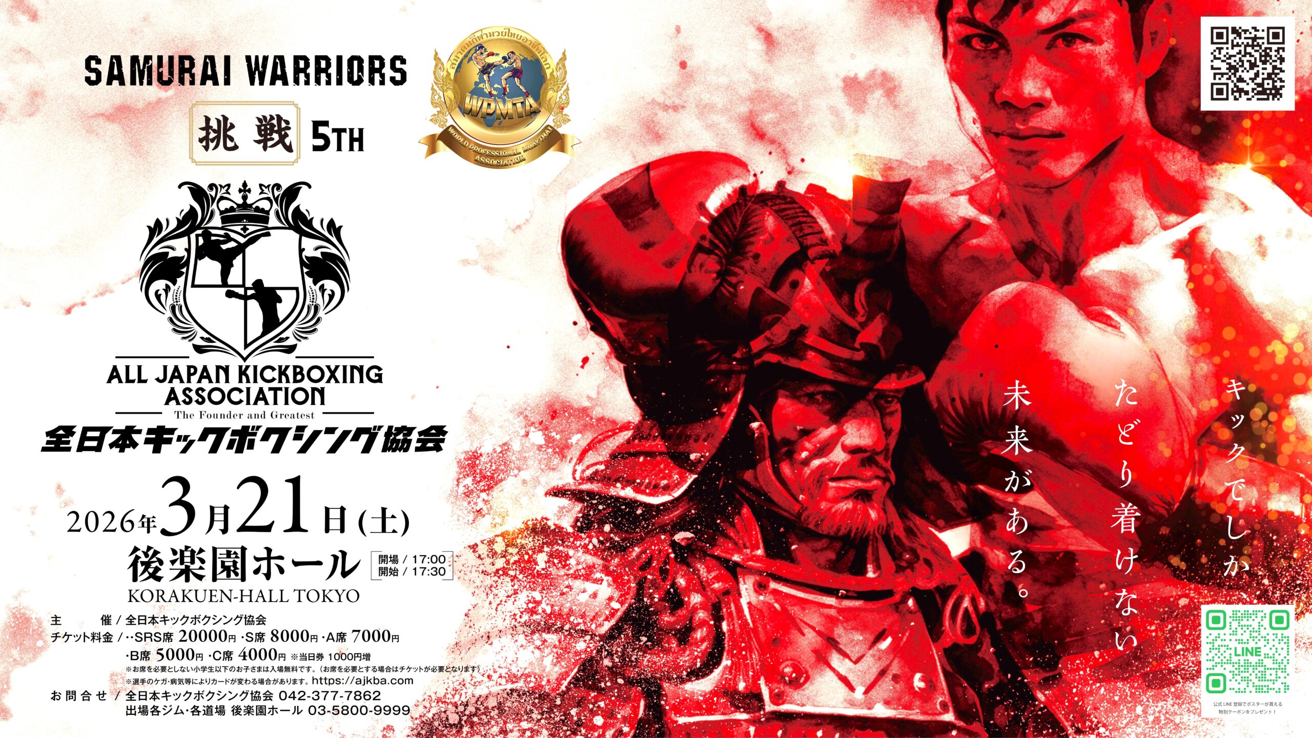 全日本キックボクシング協会 2026年興行・第一弾・SAMURAI WARRIORS挑戦5th・3月21日(土)17:00開場17:30第一試合開始